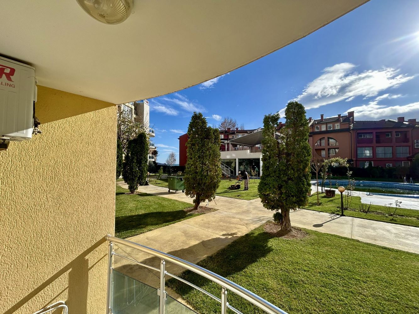 Na území komplexu je venkovní bazén, krásně upravené zelené plochy a odpočinkové zóny — klidné prostředí, které přispívá k pocitu dovolené po celý rok. Studio je vhodné jak pro celoroční bydlení, tak pro letní pobyty díky své pohodlné poloze a komfortu.
