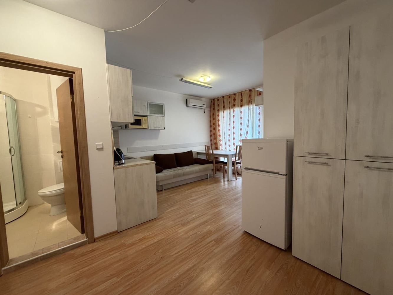 Představujeme vám útulný apartmán se dvěma ložnicemi o ploše 70 m², umístěný ve zvýšeném přízemí v klidné oblasti na okraji Slunečného pobřeží. Nemovitost nabízí vynikající rovnováhu mezi klidem, blízkostí přírody a pohodlným přístupem ke všem atrakcím letoviska. Byt má dvě terasy, které poskytují dodatečný prostor pro odpočinek na čerstvém vzduchu a vytvářejí pocit prostornosti a propojení s okolním prostředím. Funkční dispozice umožňuje komfortní bydlení jak rodinám, tak lidem hledajícím rekreační domov daleko od hluku centrálních částí. Prostory jsou světlé a přívětivé, vytvářející útulnou atmosféru pro každodenní život i odpočinek.