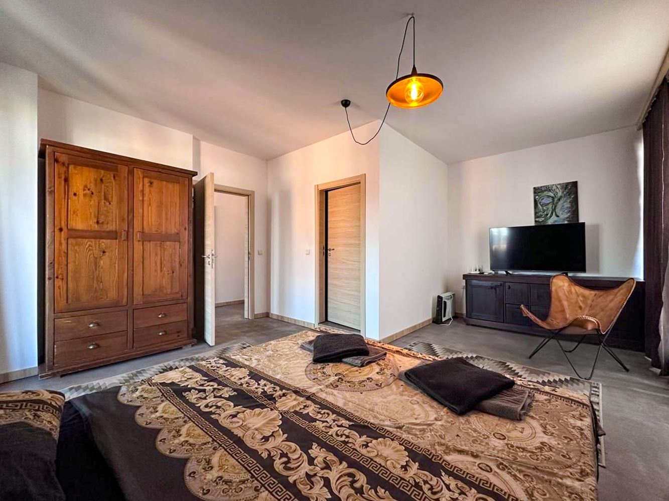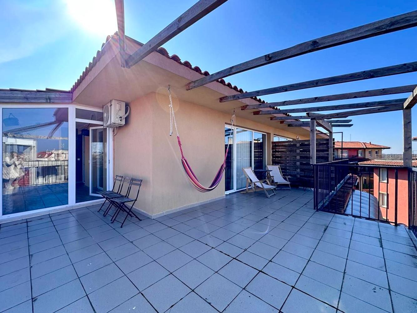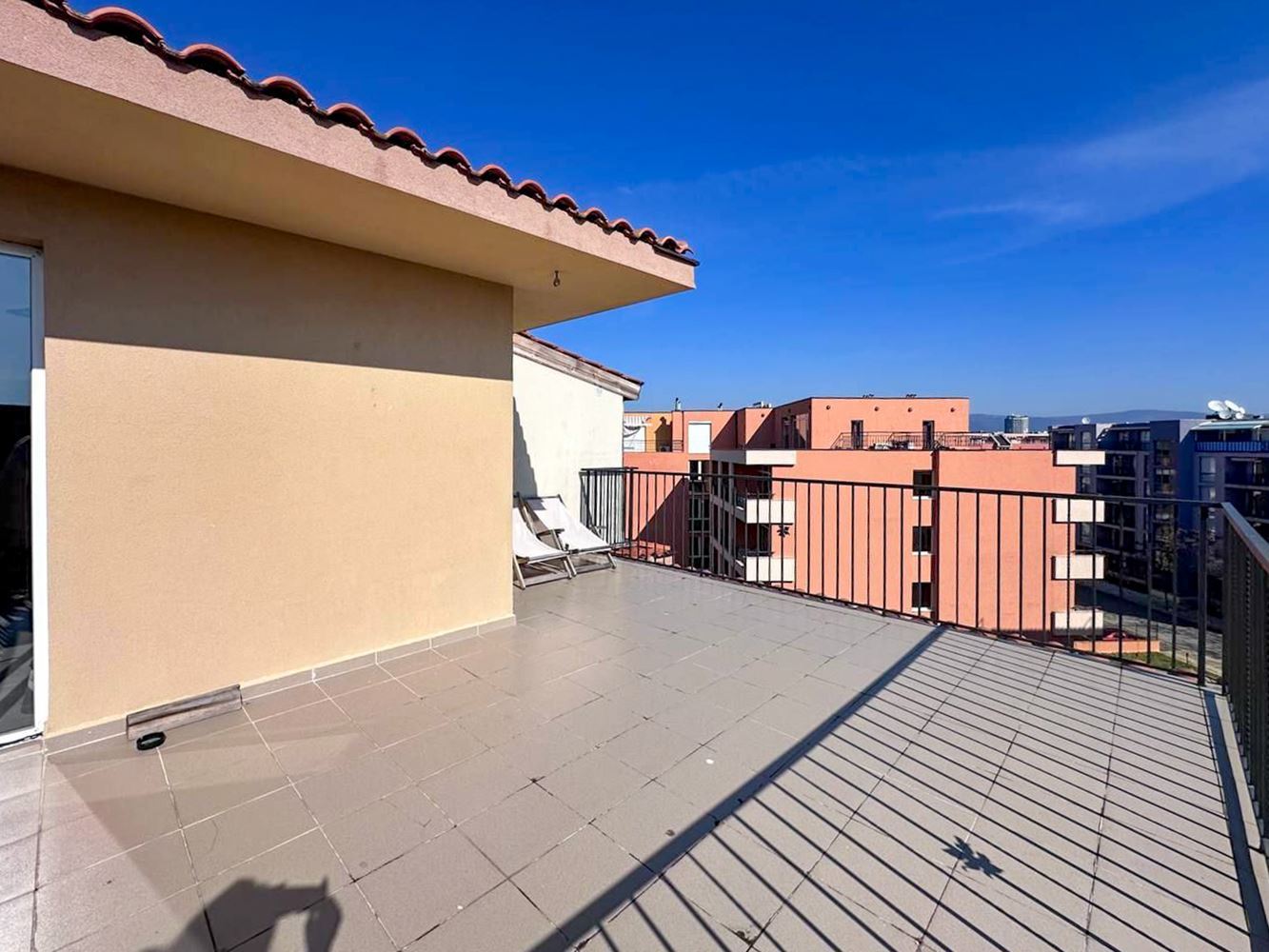 Nabízíme vám mimořádně atraktivní třípokojový byt v prestižním rezidenčním komplexu, který se nachází jen 400 metrů od pláže Sunny Beach. Nemovitost má rozlohu 112 m² a nachází se v pátém, posledním patře, což zaručuje klid, ticho a více osobního prostoru. Jedná se o vynikající příležitost pro rodinné bydlení, rekreační dům nebo investici s vysokým potenciálem pronájmu.