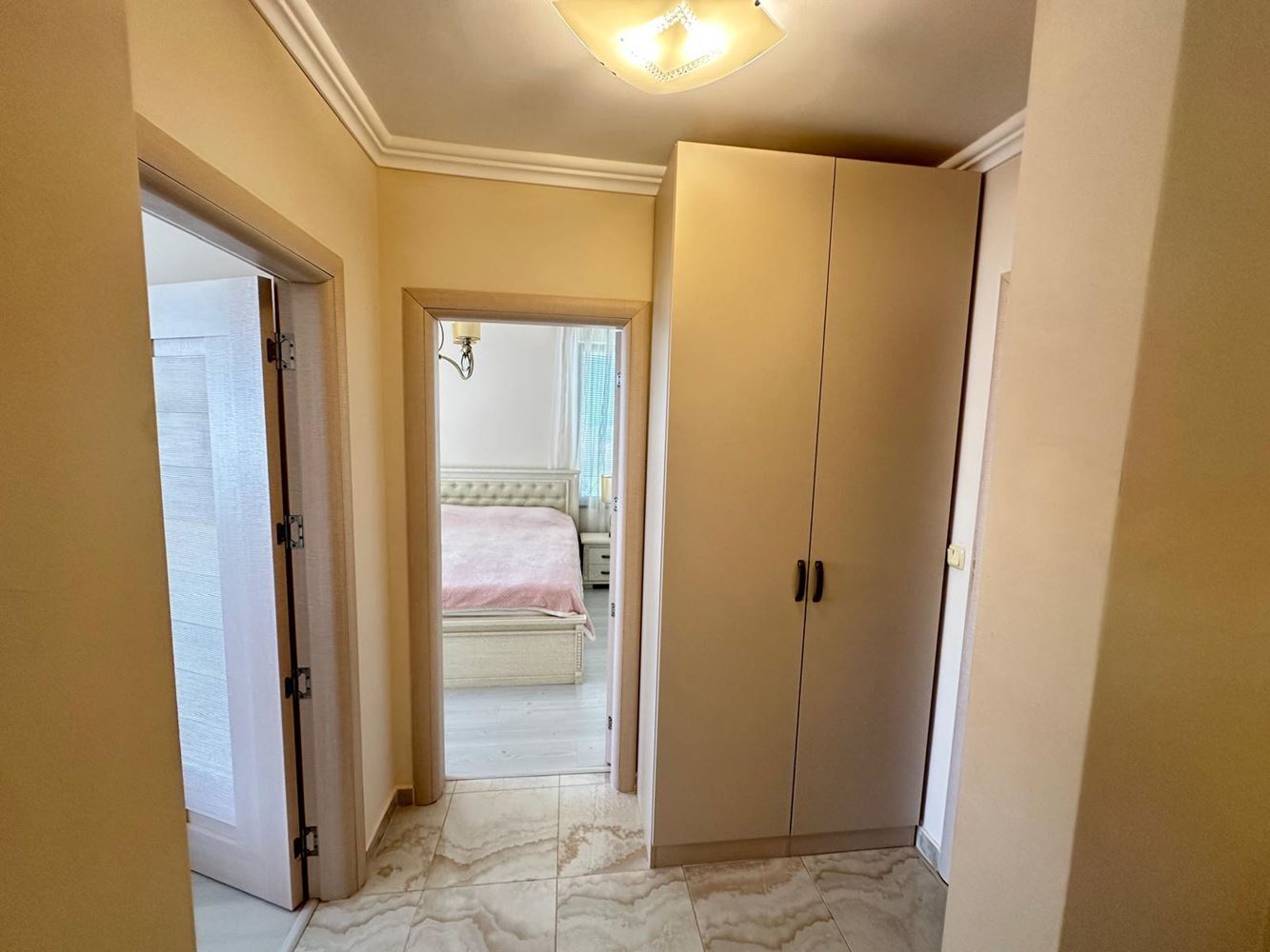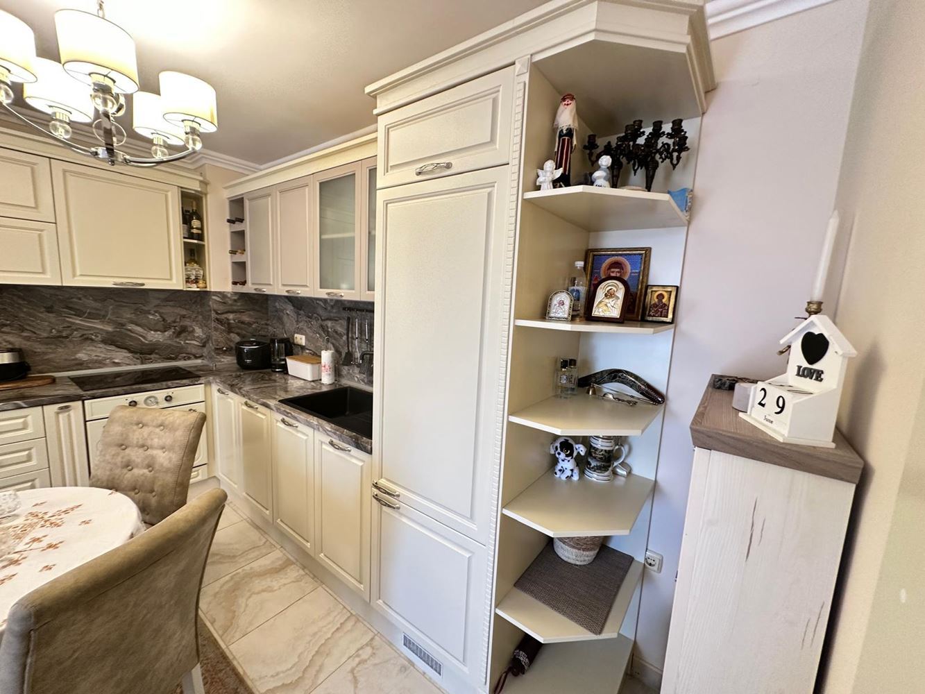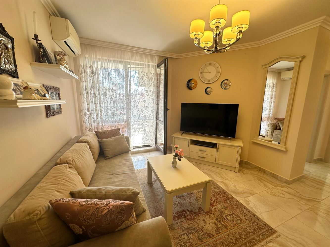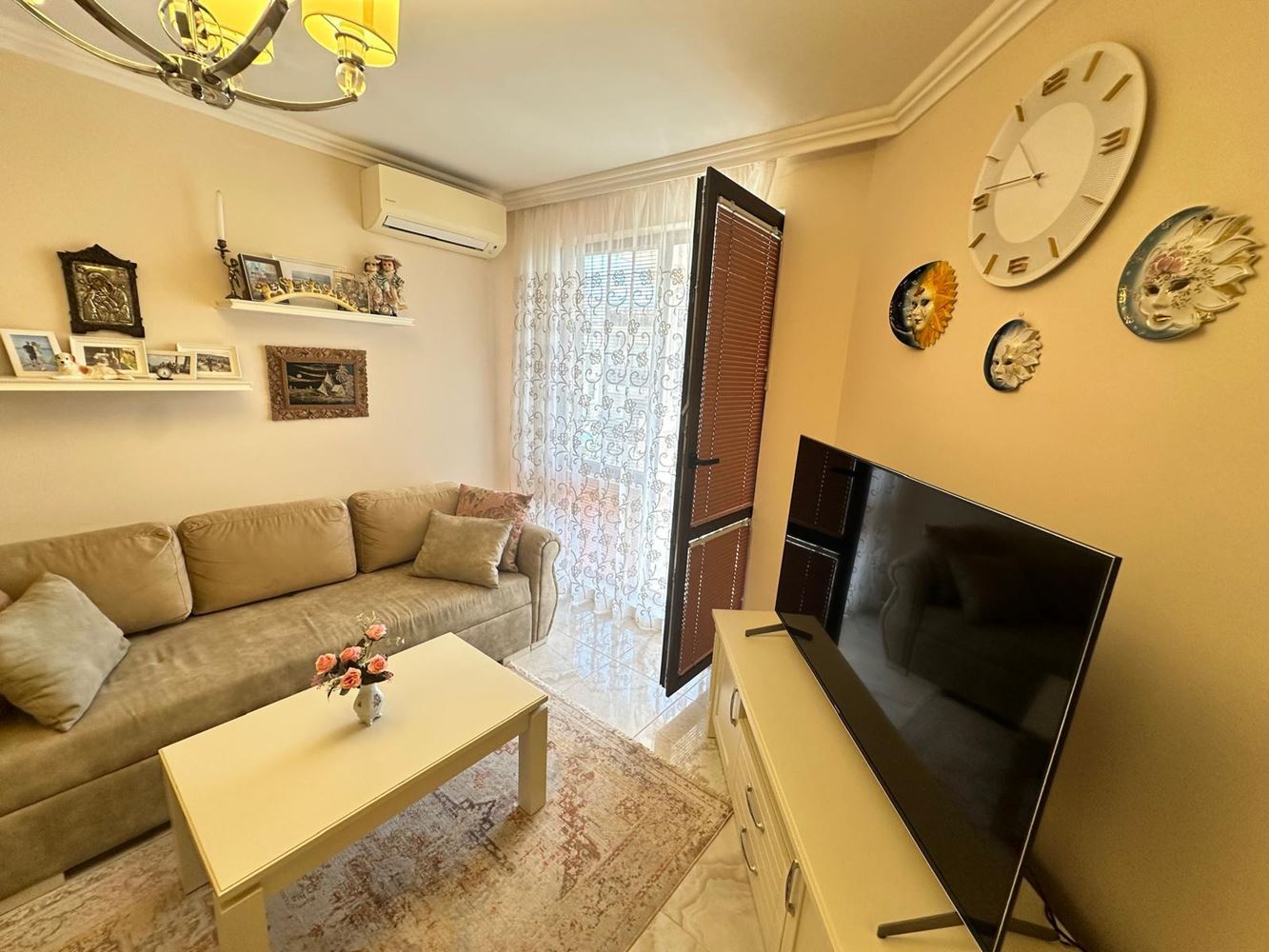 Byt zaujme funkční dispozicí a útulným prostředím. Prostorný obývací pokoj je ideální pro relaxaci a společné chvíle, zatímco plně vybavená kuchyň je připravena na vaše kulinářské nápady. Dvě světlé a pohodlné ložnice poskytují klid a soukromí — skvělé pro rodiny či hosty. Byt má dvě moderní koupelny: jednu s vanou a nádherným výhledem na moře, druhou s praktickým sprchovým koutem. Obě terasy nabízejí okouzlující výhled na moře, ideální pro ranní kávu či romantické večery.