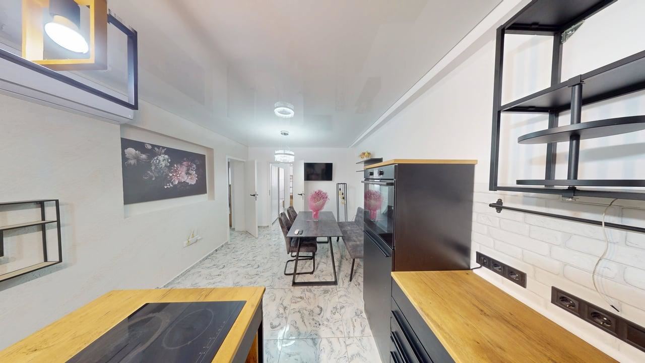 Byt je funkčně a prostorně uspořádán – obsahuje velký obývací prostor s oddělenou kuchyní, dvě pohodlné ložnice, moderní koupelnu a toaletu, a také dodatečné úložné prostory, které zajišťují pohodlí a komfort pro každého člena rodiny. Místnosti jsou světlé, a pečlivě zvolené barevné schéma a nové podlahy přidávají pocit čerstvosti a harmonie.
