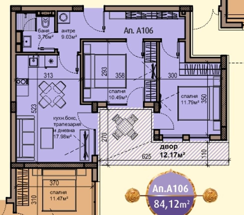 Nabízíme funkční byt se dvěma ložnicemi, umístěný v přízemí, s celkovou plochou 84,12 m², navržený s důrazem na detail a potřeby moderní rodiny. Nemovitost spojuje pohodlí bytu s pocitem domu díky vlastní zahradě o ploše 12,17 m², ideální pro ranní kávu, relaxační zónu nebo malou zelenou zahradu. Dispozice je praktická a dobře vyvážená – vstupní hala, prostorný obývací pokoj s kuchyňským koutem, dvě samostatné ložnice, koupelna s toaletou a balkon s přímým vstupem do zahrady. Byt zajišťuje vynikající funkčnost, přirozené světlo a možnost pohodlného celoročního bydlení.
