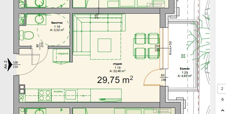 - Funkčně řešený otevřený prostor s kuchyňským koutem, obývací a spací zónou