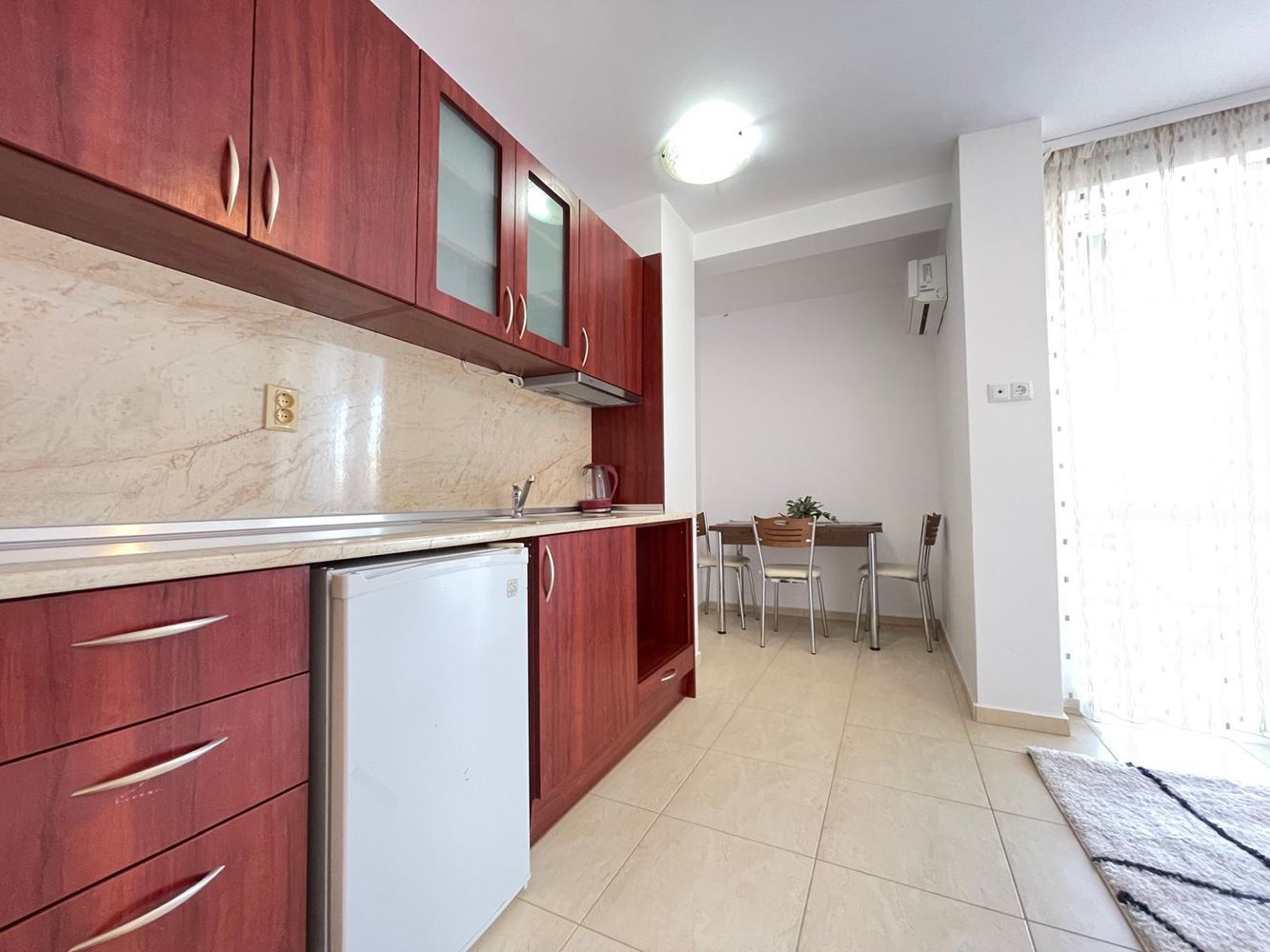 Představujeme studio o velikosti 33 m², nacházející se ve čtvrtém patře šestipodlažní budovy s výtahem v jednom z dobře udržovaných komplexů ve Slunečném pobřeží. Nemovitost nabízí komfortní a funkční dispozici, což ji činí ideální pro dovolenou, pronájem nebo celoroční bydlení.