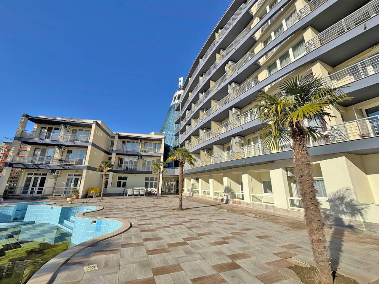 Poloha je jednou z hlavních výhod této nemovitosti. Komplex se nachází v centrální oblasti Slunečného pobřeží, v blízkosti obchodů, restaurací, služeb a dopravy, přičemž moře je vzdáleno pouze přibližně 300 metrů. Díky tomu je studio mimořádně atraktivní jak pro turisty, tak pro osoby hledající pohodlné místo pro celoroční bydlení.