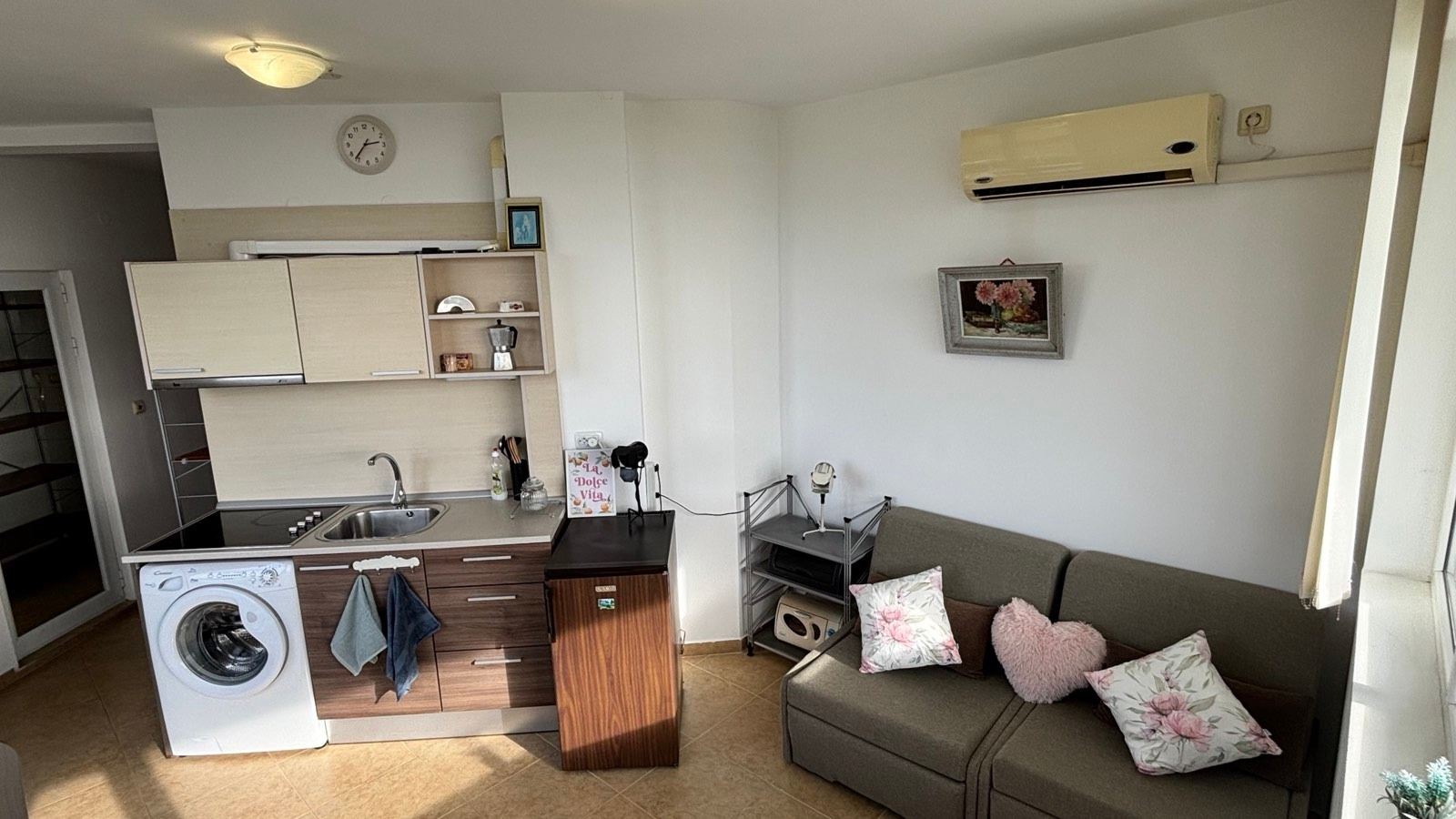 Studio je světlé, dobře uspořádané a praktické, navržené s důrazem na komfort a snadnou údržbu. Je vhodné jak pro osobní využití jako rekreační bydlení u moře, tak jako investiční nemovitost s vysokým potenciálem pronájmu, díky výborné lokalitě a poptávce po nemovitostech v této oblasti. Kompaktní plocha je optimálně využita, což činí bydlení pohodlným a příjemným.