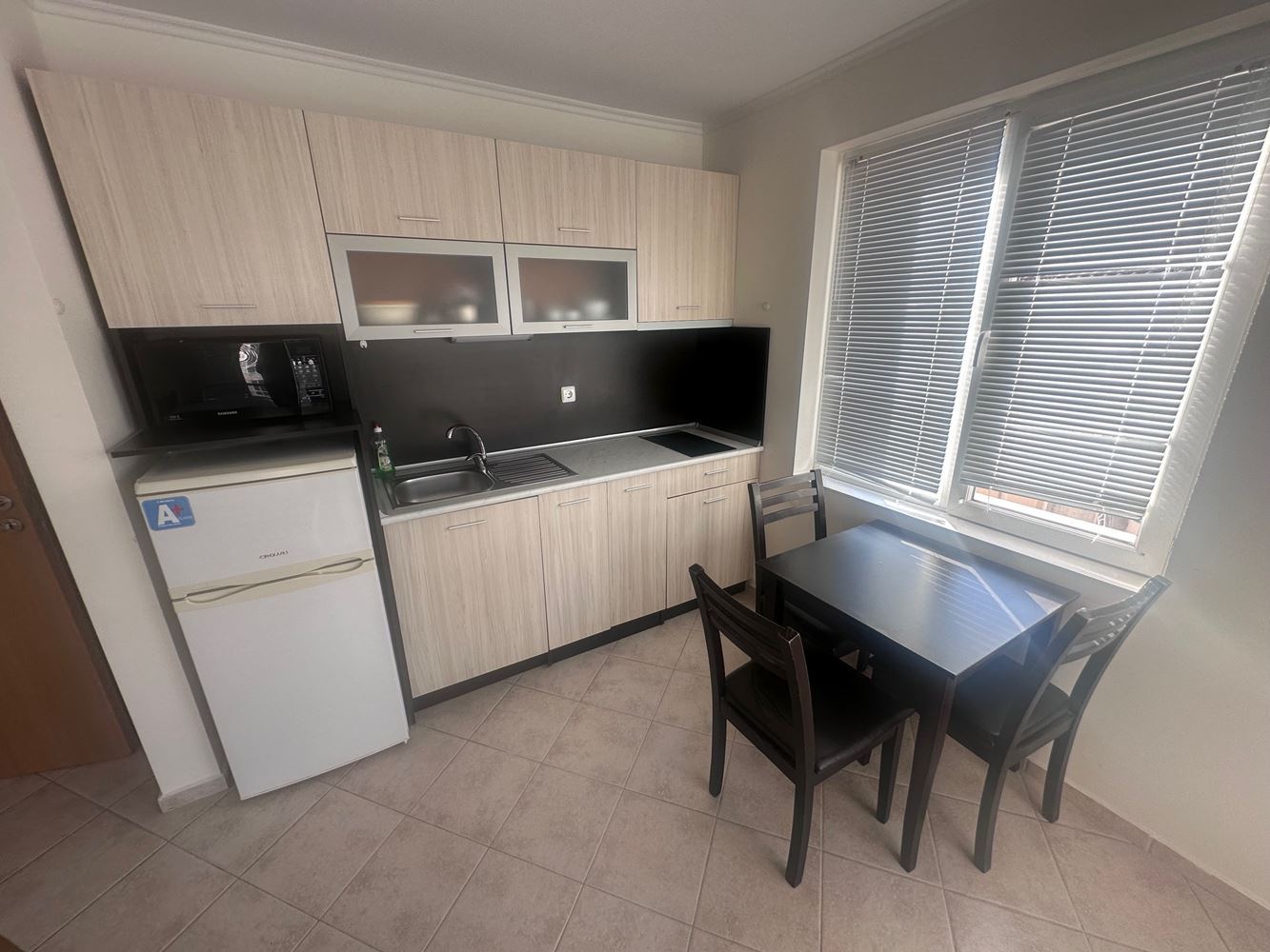 Představujeme velmi útulné a funkční studio v přímořském městě Nesebar, vhodné jak pro vlastní bydlení, tak jako investice k pronájmu. Nemovitost se nachází ve třetím patře rekreačního komplexu s bazénem a nabízí vše potřebné pro pohodlný pobyt u moře. Celková plocha bytu je 38 m², rozložená do praktického a světlého pokoje s lůžkovou částí a kuchyňským koutem, chodby, koupelny s WC a prostorné terasy, kde si můžete vychutnat ranní kávu nebo večerní vánek.