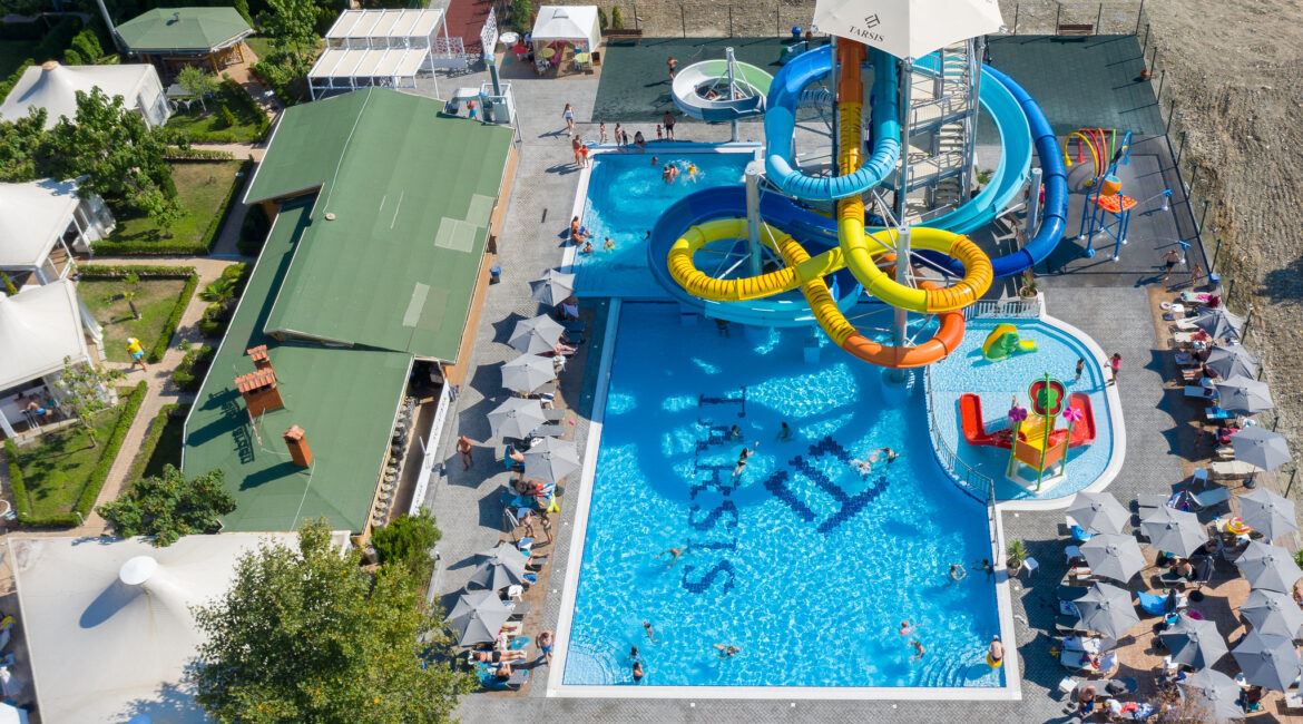 Komplex má dva velké bazény pro dospělé (jeden 30 metrů dlouhý) a dva dětské bazény, což zajišťuje bezpečnou a zábavnou zábavu pro děti. Dále je zde dětské hřiště a animační programy, které zajišťují nezapomenutelné zážitky pro děti, zatímco rodiče odpočívají. Komfort doplňuje pohodlné parkování.