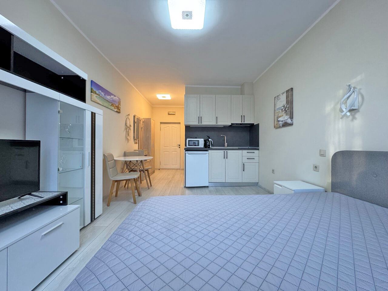 Nabízíme světlé a útulné studio o celkové ploše 41 m², situované ve 3. patře moderního rezidenčního komplexu ve městě Sv. Vlas. Nemovitost je plně vybavená a zařízená, takže se můžete nastěhovat okamžitě – bez dalších nákladů a časové investice. Budova má výtah pro maximální pohodlí v každodenním životě.