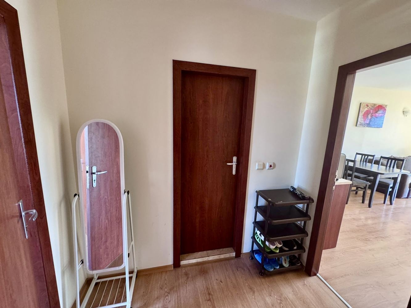 Byt nabízí prostorné a pohodlné uspořádání, které vytváří příjemný pocit prostoru a útulnosti. Vstup vede do prostorné a funkční chodby, která poskytuje pohodlný přístup do všech místností.