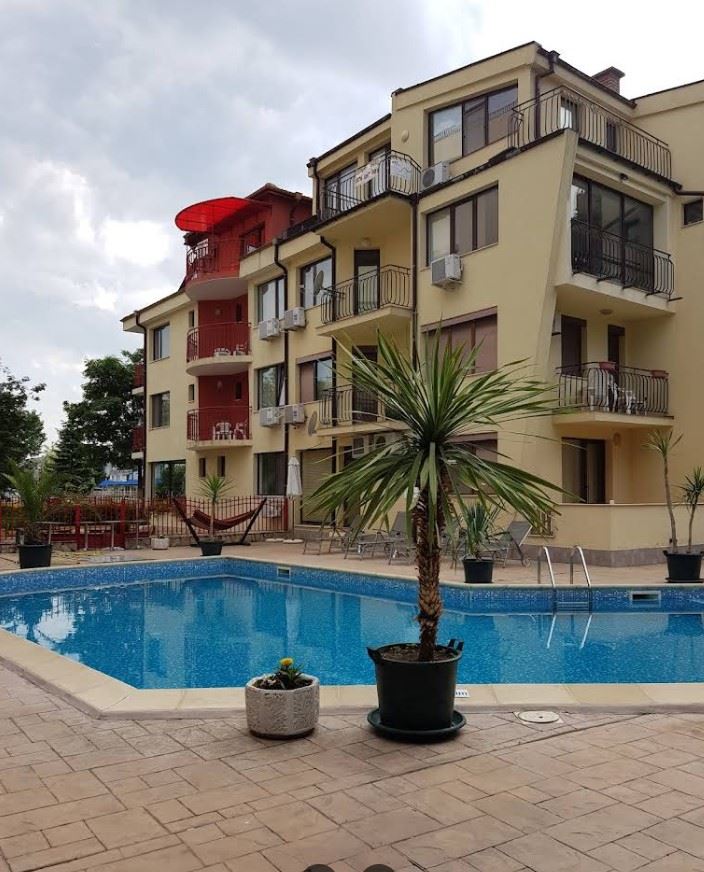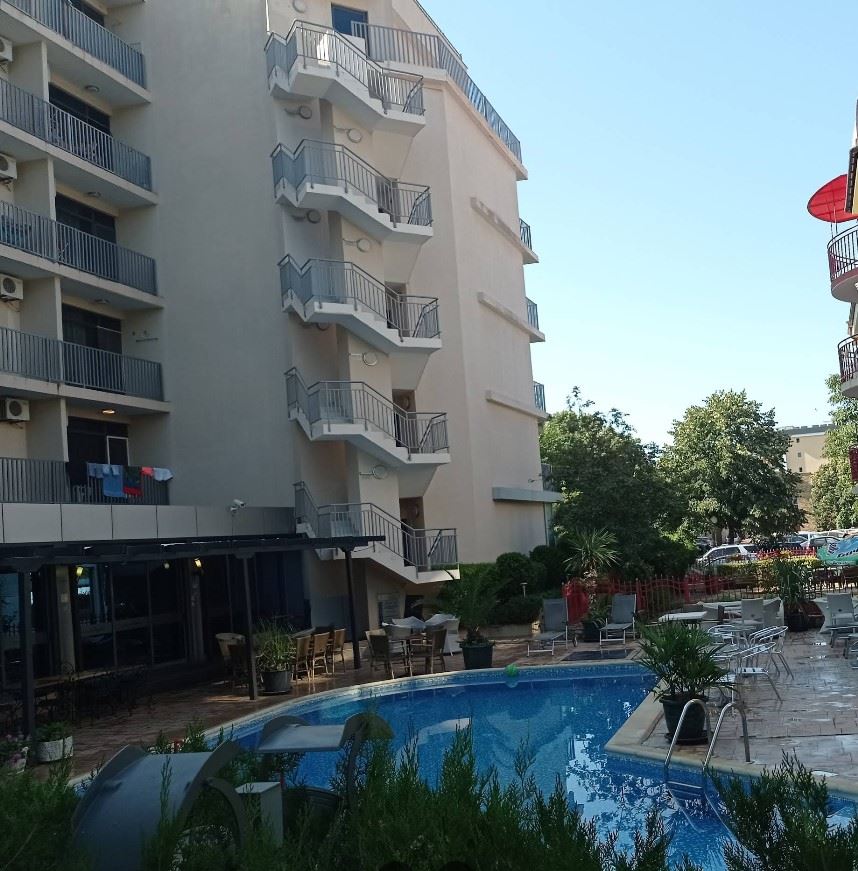 Nabízíme k prodeji kompaktní a funkční studio, nacházející se v letovisku Slunečné Pobřeží, které je skvělou volbou jak pro rekreační bydlení, tak pro investici s potenciálem pronájmu. Byt se nachází ve vyvýšeném přízemí a má plochu 34 m², což poskytuje pohodlí a praktické uspořádání prostoru. Apartmán má světlou hlavní místnost, ve které lze pohodlně vymezit zónu pro spaní, odpočinkový kout a prostor pro kuchyňský kout. I když byt nemá terasu, nabízí přímý vstup do dvora, což vytváří příjemný pocit prostoru a možnost odpočinku venku.