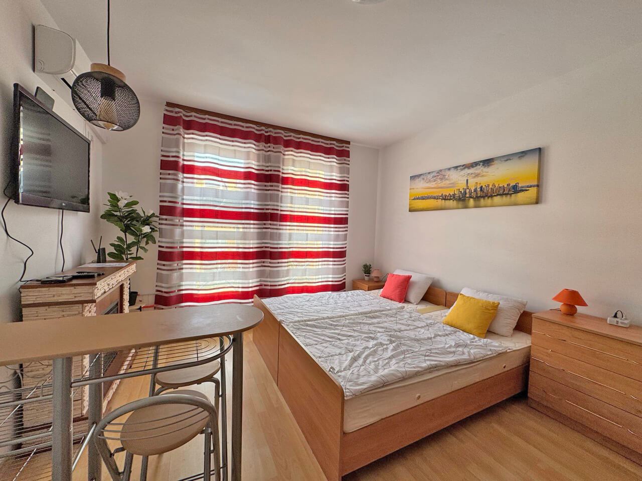 Nabízíme k prodeji kompaktní a funkční studio v jednom z nejoblíbenějších letovisek – Slunečné pobřeží. Nemovitost se nachází ve druhém patře udržovaného komplexu, který je v provozu celoročně a nabízí vynikající podmínky jak pro vlastní užívání, tak jako investici. Studio má celkovou plochu 28 m² a zahrnuje jednu hlavní místnost a koupelnu s WC, bez balkonu. Dispozice umožňuje snadné oddělení prostorů pro spaní, obývací část a kuchyňský kout.