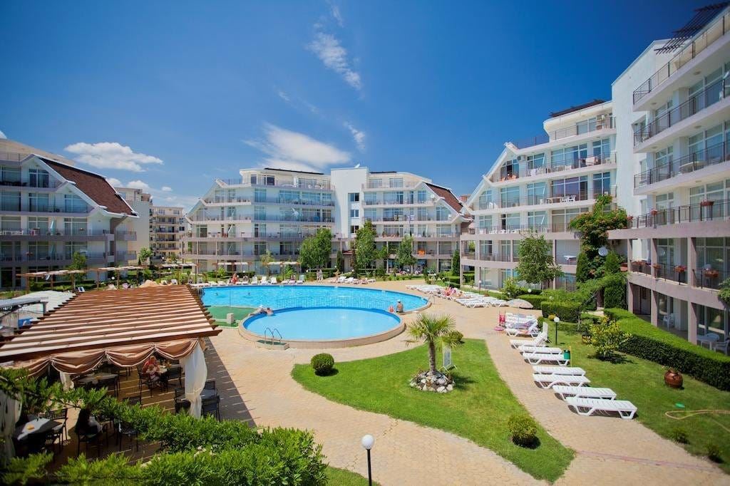Zařízený třípokojový apartmán v udržovaném komplexu s bazénem v Slunečním pobřeží