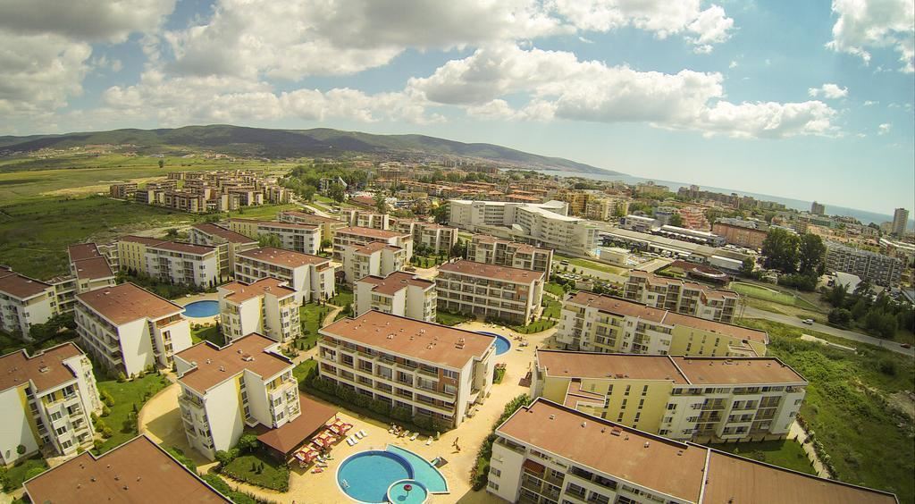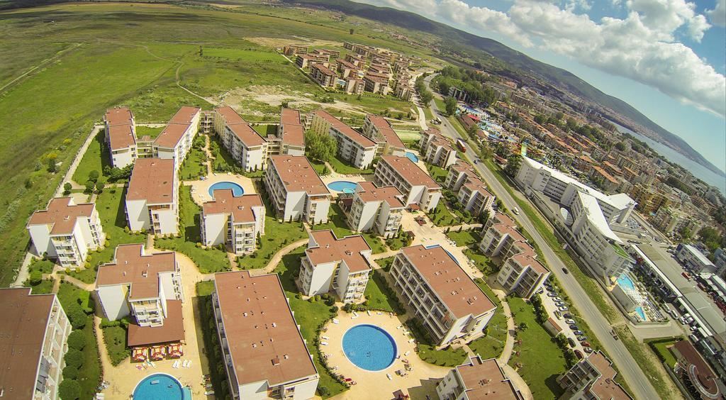 Poloha komplexu je mimořádně výhodná – v bezprostřední blízkosti Action Aquaparku a v docházkové vzdálenosti od pláže a centra Slunečného pobřeží. To umožňuje snadný přístup ke všem zábavám, restauracím, obchodům a atrakcím, a zároveň zachovává klidnou atmosféru komplexu.